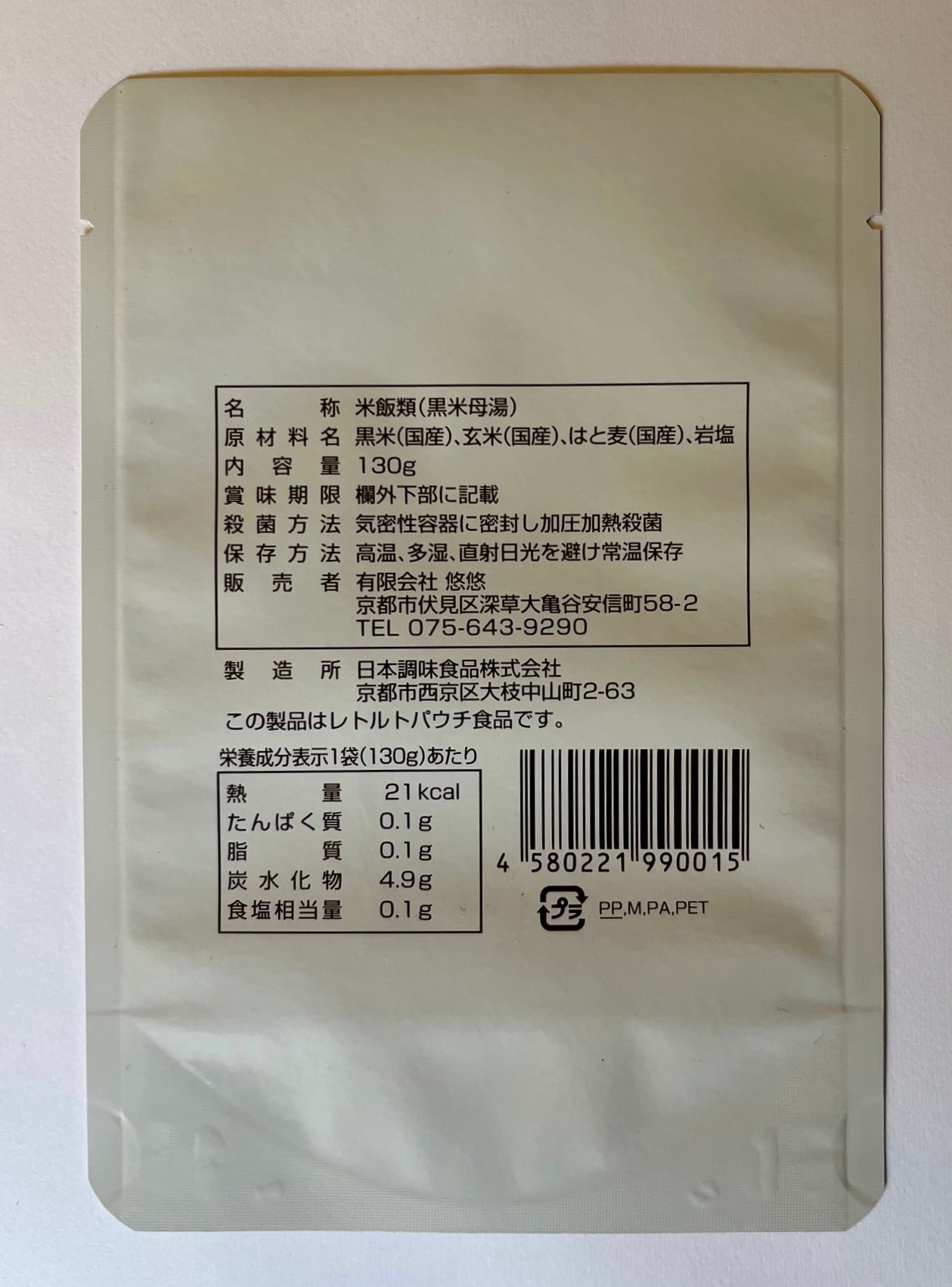 黒米母湯は、国産の黒米・玄米・ハトムギに、岩塩のみを加えて炊き上げた重湯です。